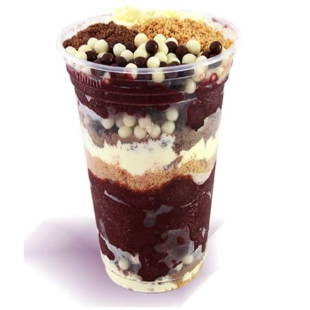 Delicioso Açaí natural com duas camadas de chocolate ao leite derretido. 550ml