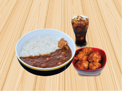 A típica comida caseira do japão, levemente apimentado e acompanhado com kara ague (frango frito) em dobro e arroz japonês.