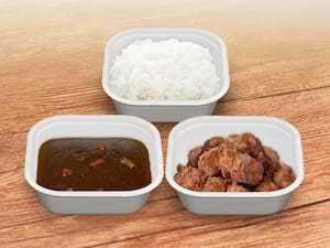 Combo especial com 4 porções de arroz m, 3 porções de curry m e 12 unidades de kara agues.