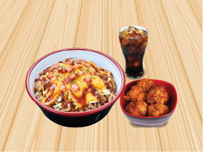 O nosso famoso Gyudon ficou mais saboroso com uma rica combinação do nosso molho Bbq agridoce defumado com bacon e mix de queijos derretidos.