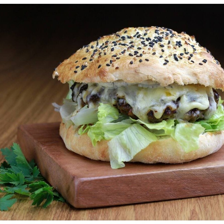 Hamburger de kafta de 150gr Acompanha alface,tomate, cebola, molho especial no pão turco