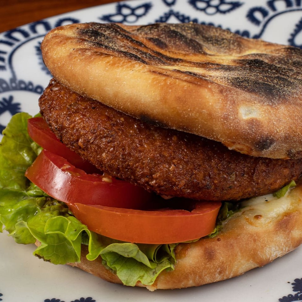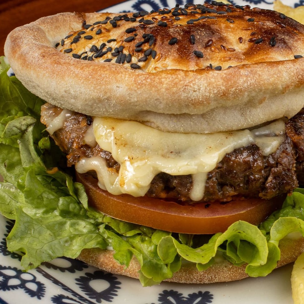Hamburger de Falafel,Mussarela alface,tomate, molho especial no Pão Turco assado na Hora.