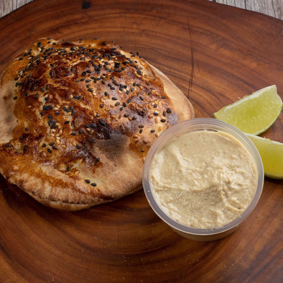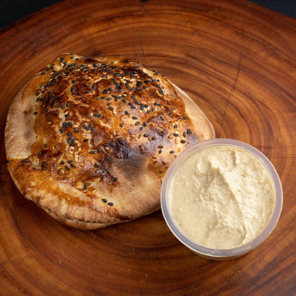Nossa deliciosa Pasta de Homus ( a base de grão de bico) Acompanha delicio do Pão Sirio, que seque tradicições milenares. ) 100ml