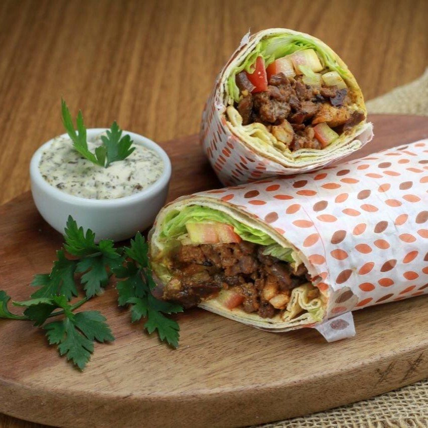 O 'Kebab de Carne-Shawarma', é uma experiência culinária extraordinária. Este delicioso wrap possui uma suculenta carne meticulosamente picada e temperada com um blend distinto de especiarias. Acompanhado de uma salada fresca e vibrante, tomates maduros e suculentos, é finalizado com um molho especial que lhe confere um sabor único e inesquecível. Tudo isso delicadamente envolto em um pão sírio