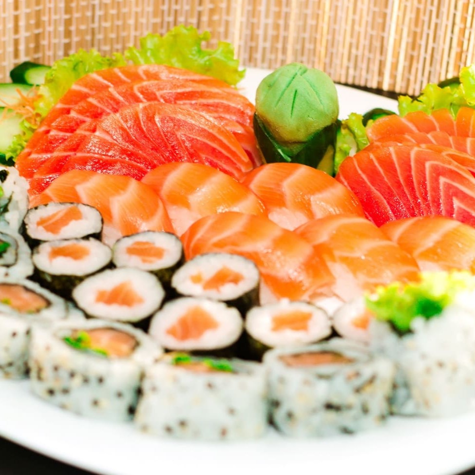 6 Sushis, 8 Sashimis, 8 Uramakis e 8 Hossomakis
