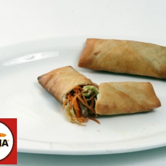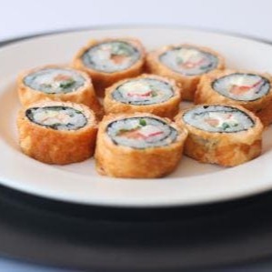 8 Hot Rolls enrolados e empanados com recheio de algas, arroz, cream-cheese, kani-kama, salmão e cebolinha. (Acompanha molho tarê, gari e wassabi)
