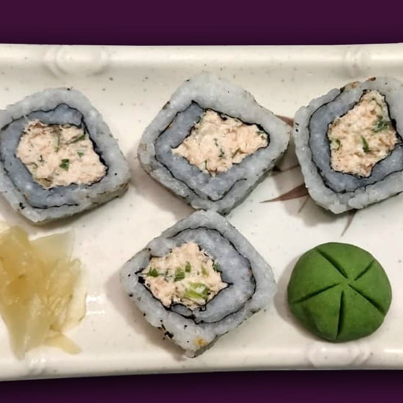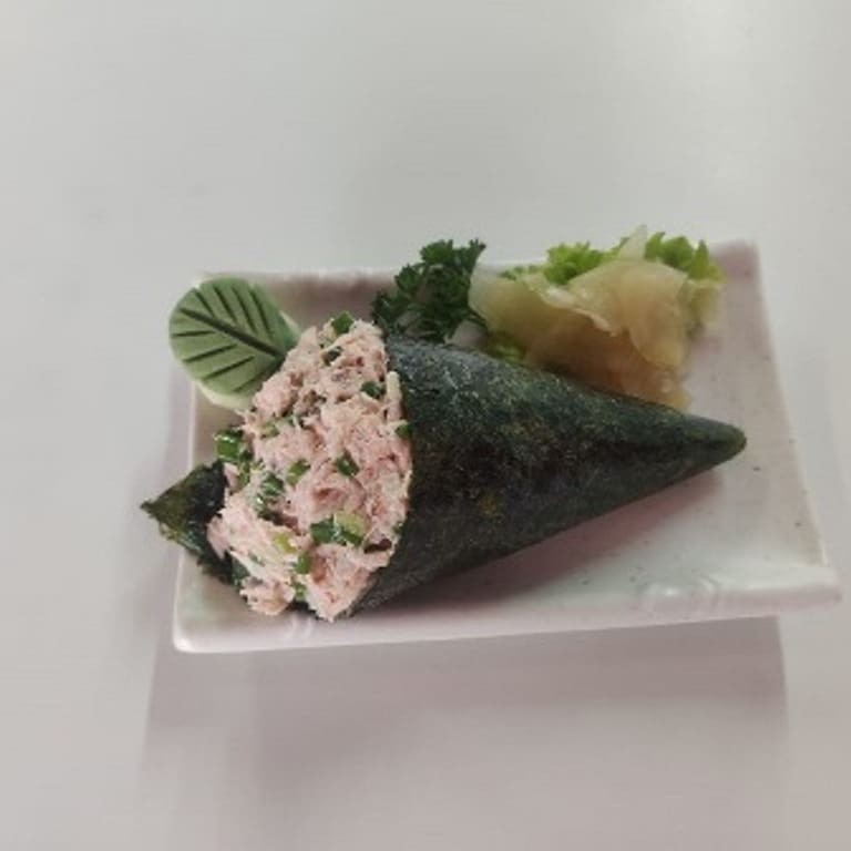 Alga marinha desidratada (Nori), recheada com Arroz Gohan e delicioso salmão grelhado com Cream Cheese e cebolinha.200 a 230 g ( Acompanha delicioso molho tarê )