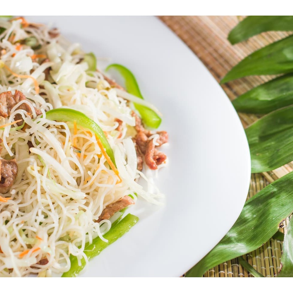 Delicioso Macarrão de Arroz, Carne Fatiada, Cenoura, Pimentão, Repolho, Cebola.