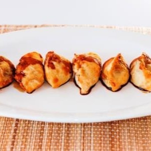 Massa fina recheada com lombo de porco temperado com gengibre. acompanha shoyu.