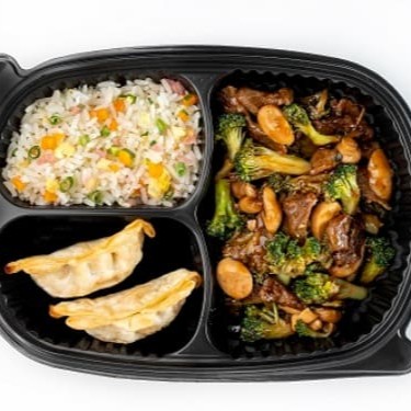 Aqui vc escolhe 5 opções de proteína + Arroz yakimeshi + Rolinho doce ou salgado + refrigerente 200 ml pet