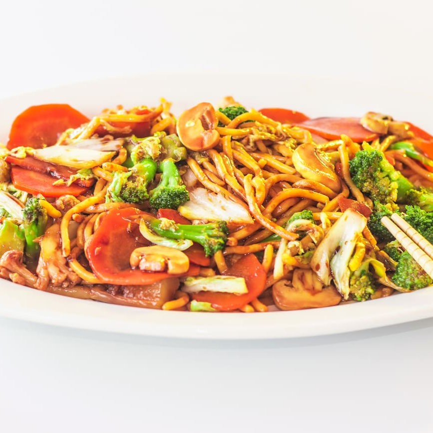 Delicioso macarrão chinês, brócolis, couve flor, cenoura, acelga e champignon, temperados ao delicioso molho do chef.. ( serve 2 pessoas )