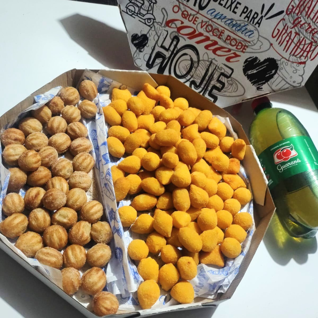 100 Mini Salgados 10g+ 30 Churros+ Guaraná 1l