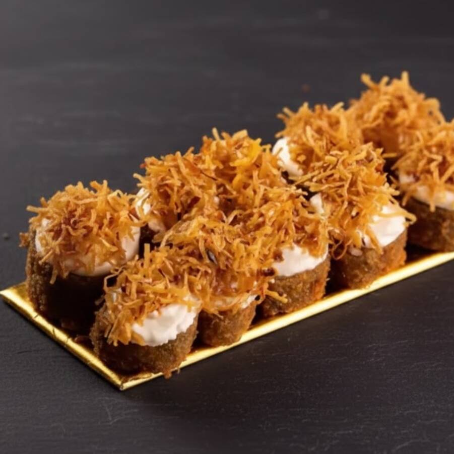 10 unidades de hot holl Salmão cream chees cebolinha e molho tare + 14,99 leve 10 hot banana com chocolate