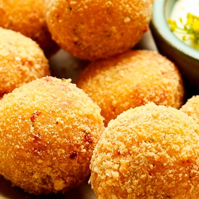 4- unidades de bolinho de salmão temperado e empanado experimente este sabor!!