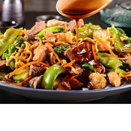 Legumes refolgado com molho e camarão, e macarrão para yakissoba