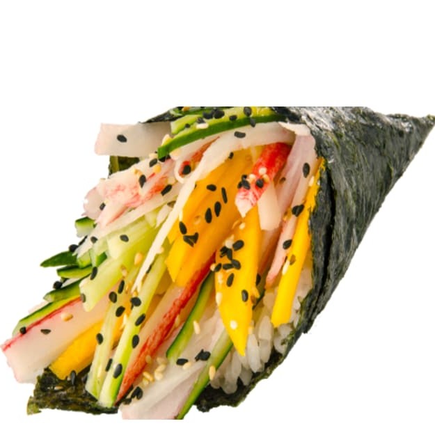 Alga em forma de cone arroz japonês manga pepino kani gergelim