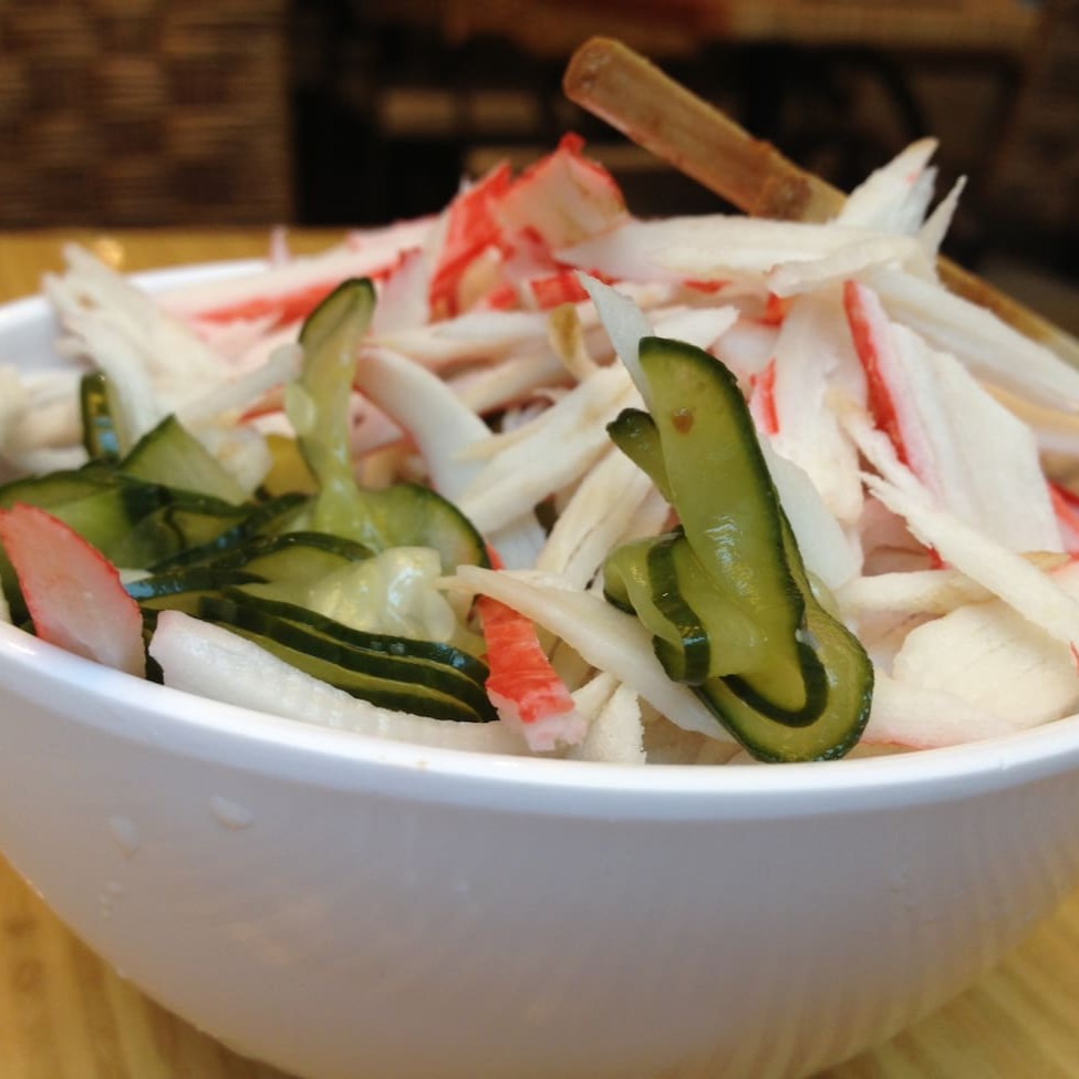 Shimeji, arroz japonês, sunomono, cebolinha, cenoura, manga.