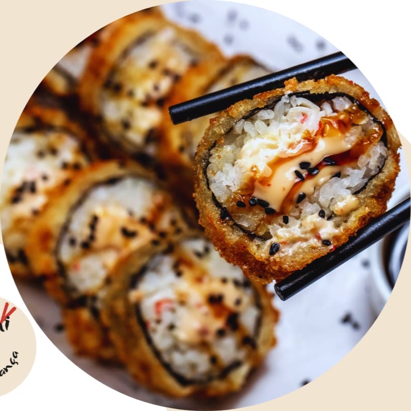 1 Temaki tradicional + 5 Hot rolls sushi.