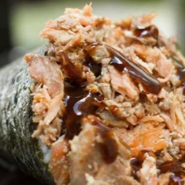 Delicioso cone recheado de arroz japonês , salmão grelhado com cream Chease envolvido com alga .OBS:Cebolinha só irá no combo se estiver disponivel na loja.