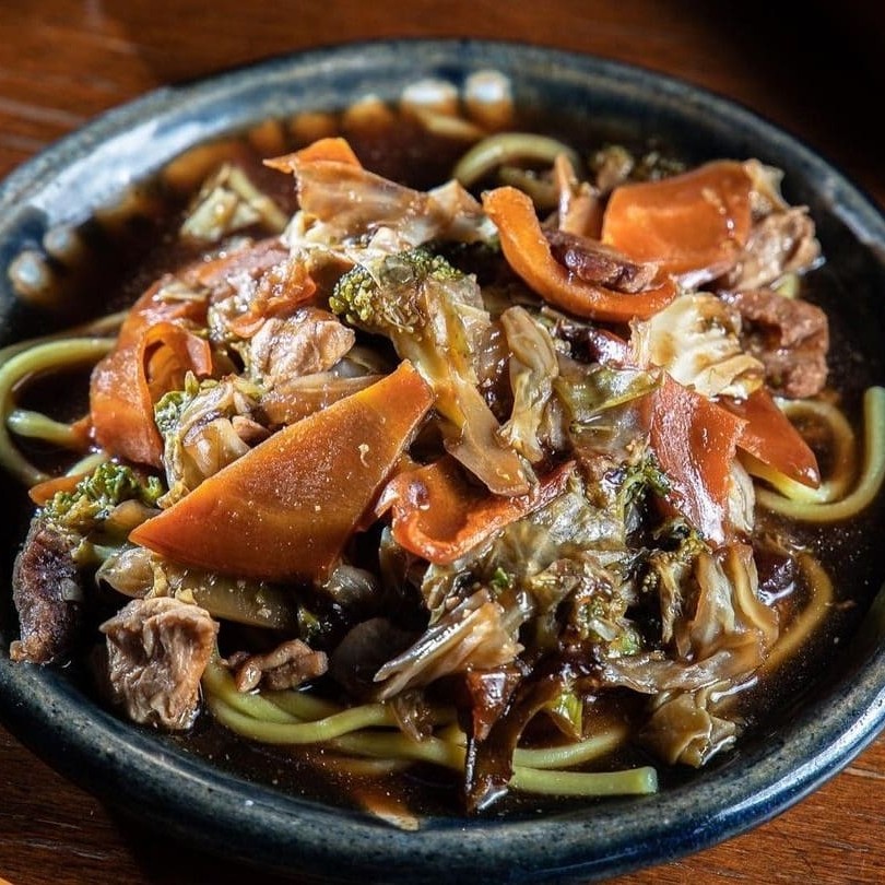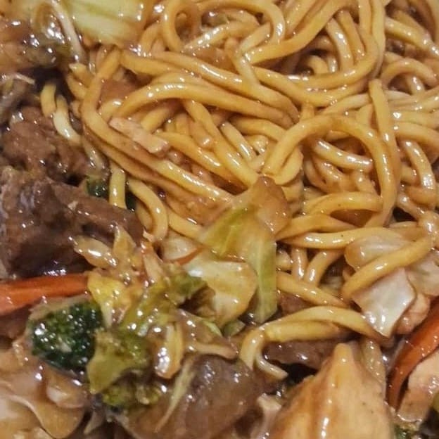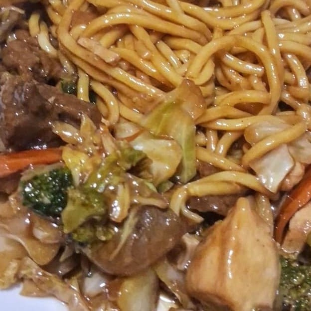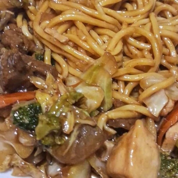Delicioso macarrão com legumes, carne , frango , camarão e molho a base de shoyo