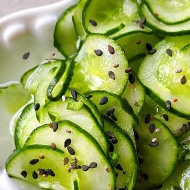 Deliciosas fatias de pepino japonês em conserva. Aproveite