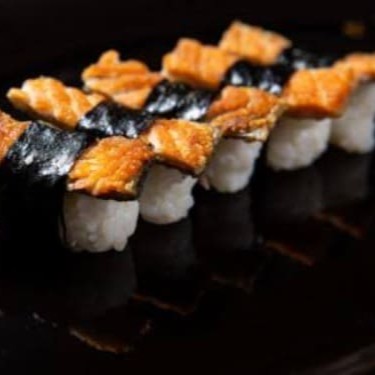 Delicie-se com o nosso Niguiri Salmão Skin, uma porção com cinco unidades generosas. Este prato apresenta uma combinação perfeita e harmoniosa de arroz sushi preparado à perfeição, coberto com uma fatia suculenta de pele de salmão, cuidadosamente frita até atingir uma textura crocante irresistível. Uma verdadeira festa para o paladar, este prato oferece um contraste delicioso de texturas e sabores
