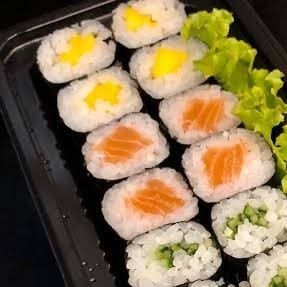 10 uramaki salmão 10 Hossomaki pepino 10 uramaki salmao skin 5 Niguiri salmão skin. OBS: Cebolinha só irá no combo se estiver disponivel na loja.