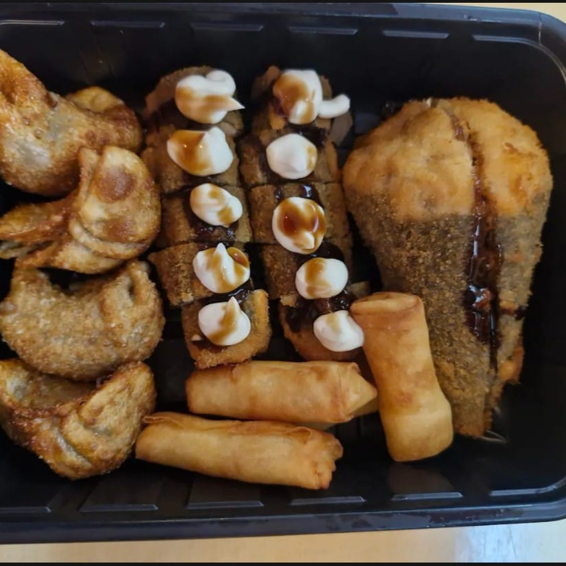 10 Hot roll + 1 Temaki empanado com salmão grelhado e cream chease+ 4 Guiozas + 4 Rolinho de queijo.