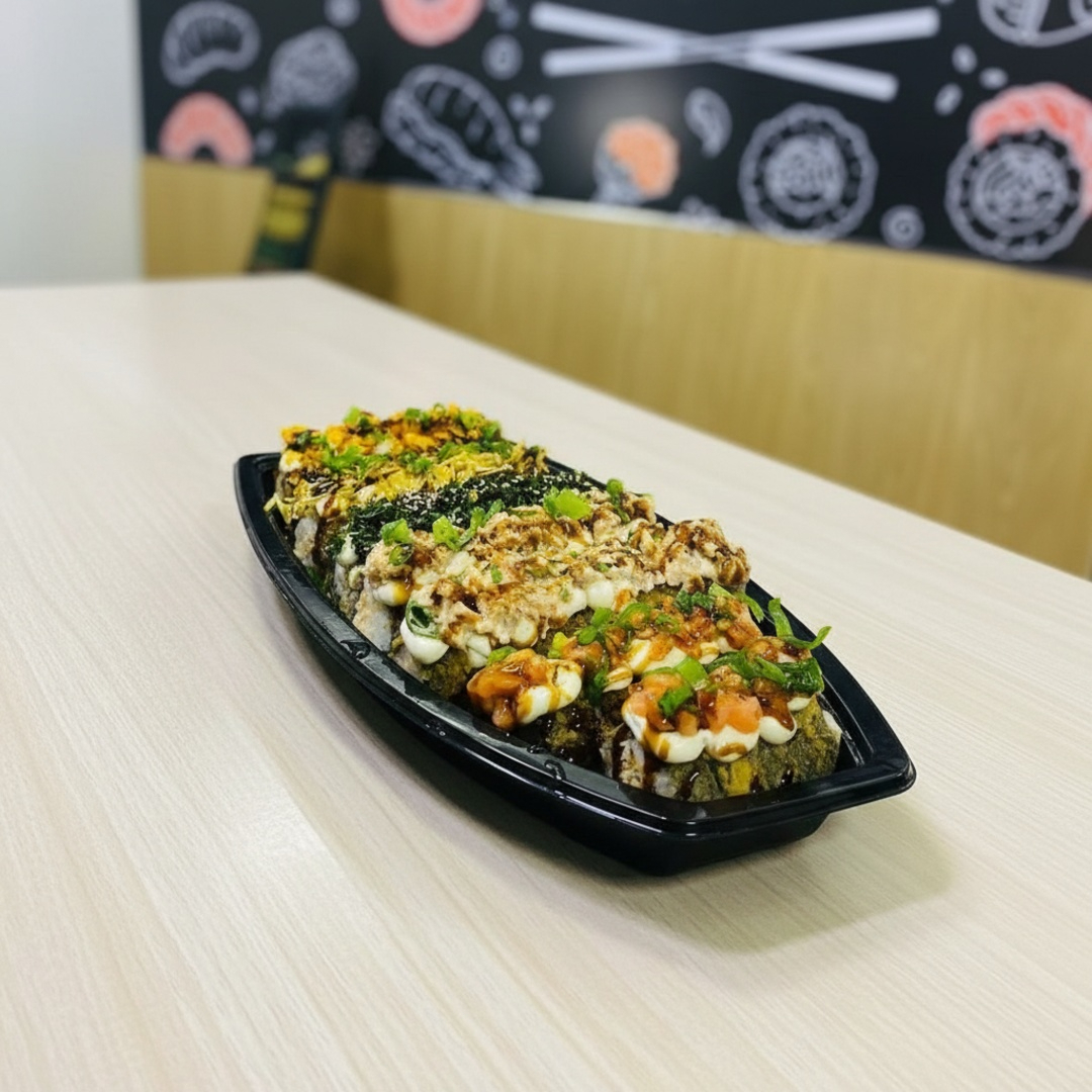 Delicie-se com um banquete japonês para 2 a 3 pessoas! Inclui 6 Uramakis especiais, 6 Uramakis, 2 Minitemakis quentes, 8 Hossomakis, 6 Hotrolls, 2 Nigiris, 2 Joys, 3 Bolinhos de Salmão e 3 rolinho primavera e 3 guioza. Acompanha 3 molhos Shoyo, 3 molhos Tarê e 2 Hashis! Sabores irresistíveis em cada pedaço! 🍣✨