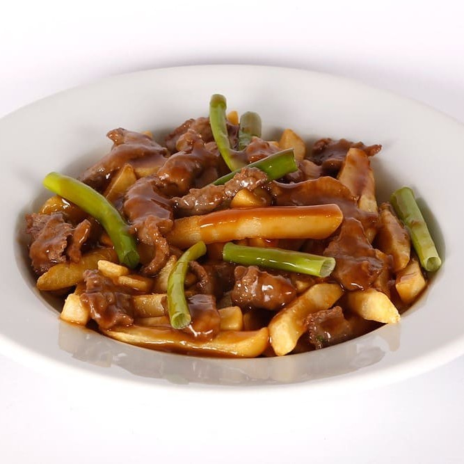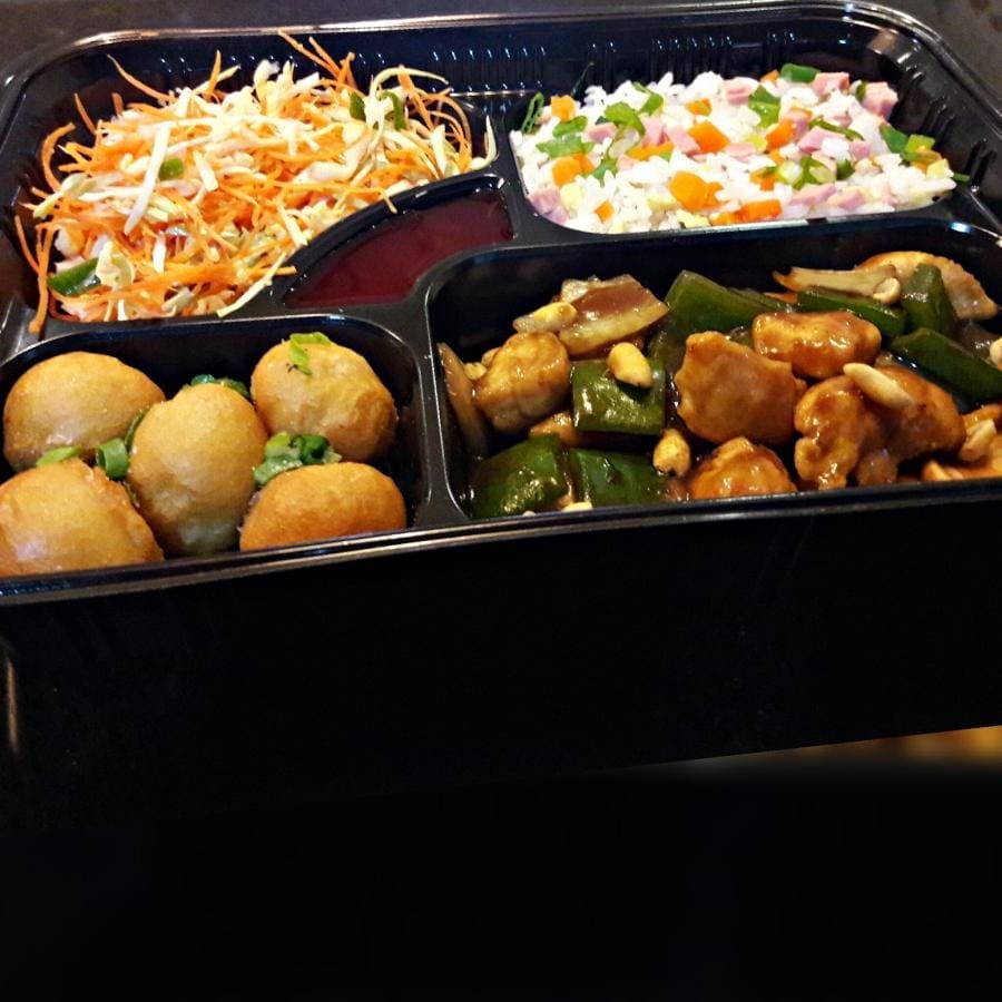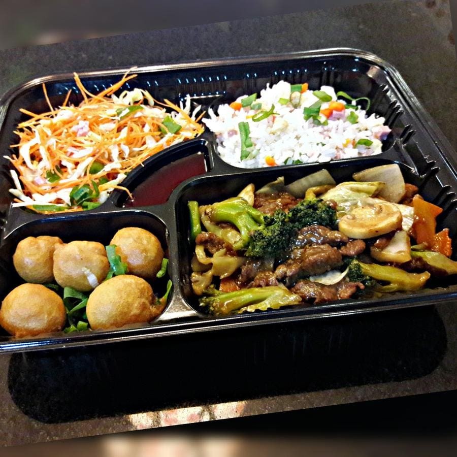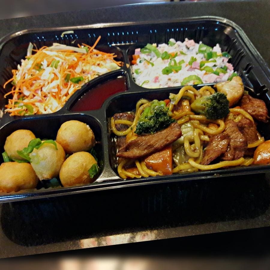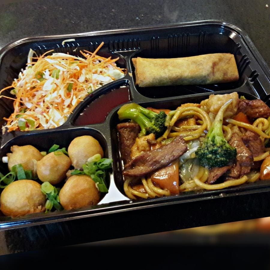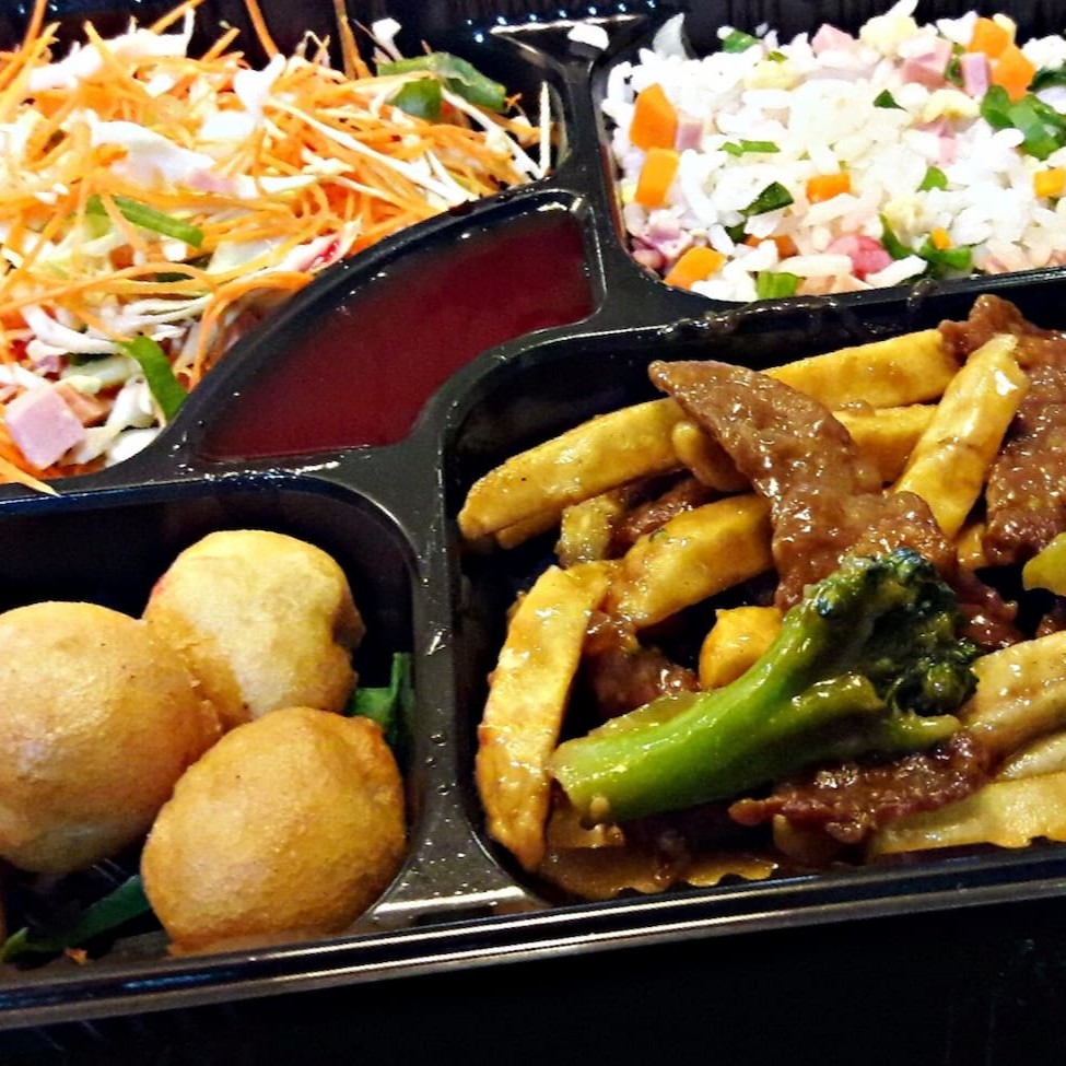1 Carne com batata padrão 1 Yakimeshi padrão 2 unidades de rolinho primavera