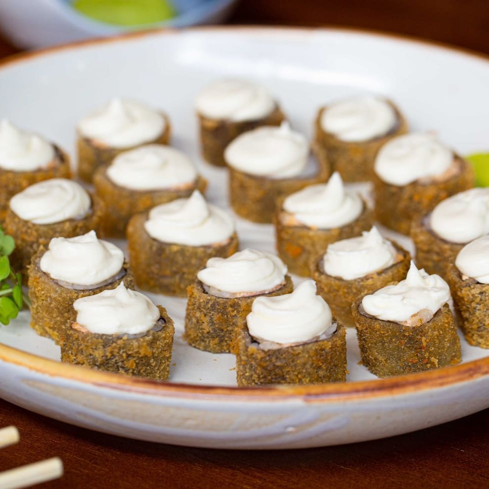 Enrolados de alga com recheio de salmão.