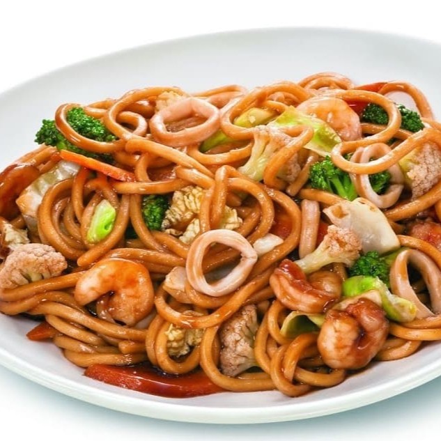 Delicioso macarrão chinês frito, acompanhado de carne bovina, frango, camarão, acelga,brócolis,e cenoura