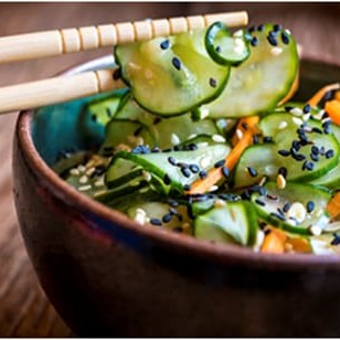 Salada de pepino,cenoura desfiada e gergelim