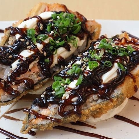 Sushi de salmão empanado.