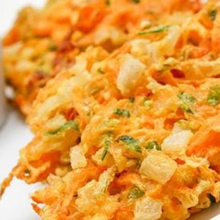 Cenoura,cebola,repolho,vagem,brócolis e desfiados empanados.com camarão em uma massa leve e crocante