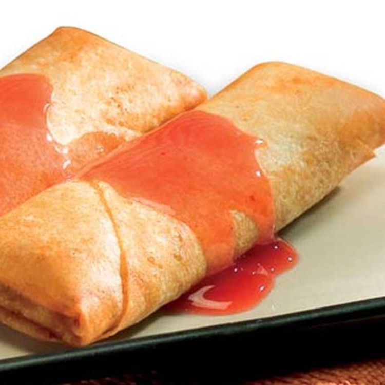 Pastel chinês com massa leve crocante, recheado com carne bovina, cenoura e repolho desfiado (acompanha molho agridoce)