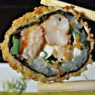 Temaki totalmente empanado com recheio de salmão cru ou salmão grelhado, com Cream cheese e cebolinha