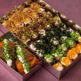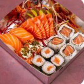 6 Sashimi 2 Jhous 2 niguiri skin 2 Niguiri salmão 4 Hot Hol 2 Temaki 100g a escolha do cliente 2 Guioza 2 Harumaki De Queijo 2 Salmões Grelhados com legumes 1 Shimeji 100g