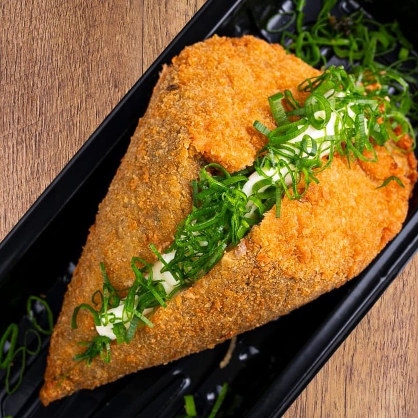 Filadélfia, shari, nori, farinha Panko, creme cheese e cebolinha