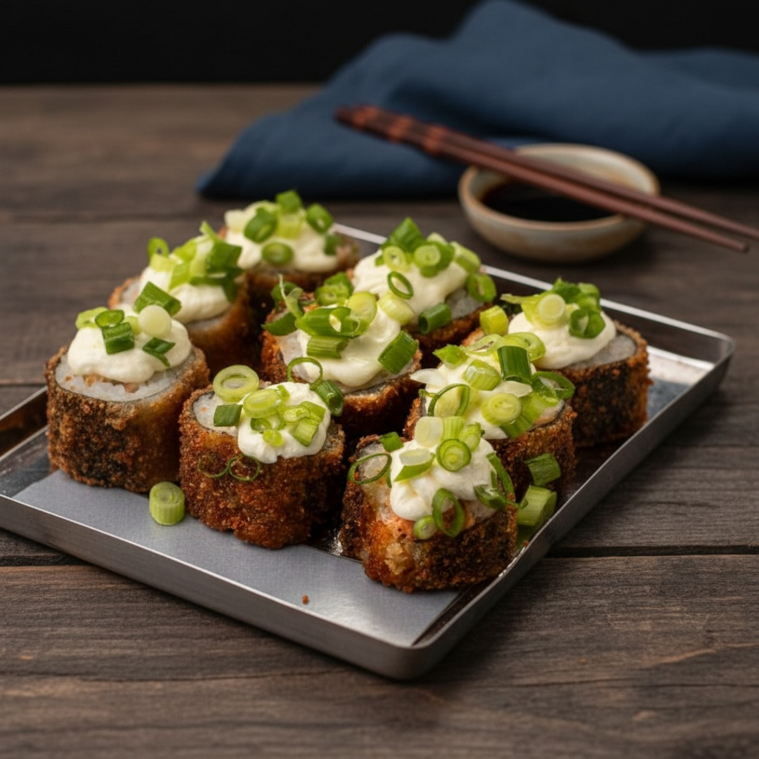 Temaki de shimeji batido com cream cheese e cebolinha.