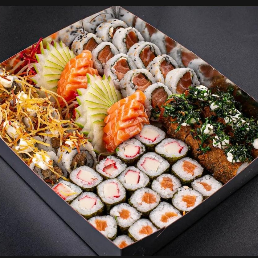 Aproveite nosso Combo Família com 116 peças incríveis em promoção! Este delicioso combo é composto por 20 peças de Salmomaki fresquinho, 20 irresistíveis Hot Holls com Couve Crispy crocante, 20 Uramaki Filadélfia envoltos em Batata Crispy saborosa, 20 Kanimakis delicados e 20 Uramaki de Salmão suculentos. Para finalizar, temos ainda 16 fatias de Sashimi de Salmão fresco e delicioso. Um verdadeiro banquete de sabores para compartilhar com a família e amigos!