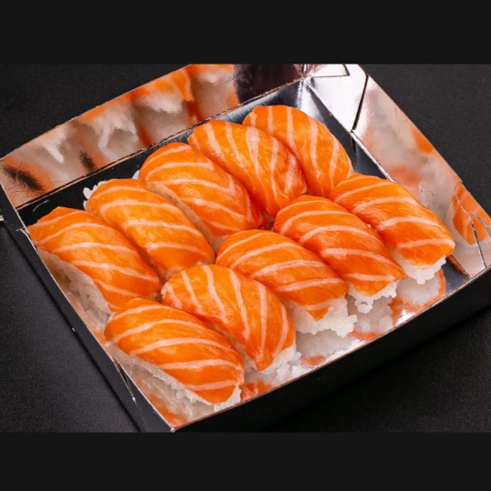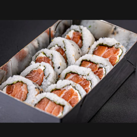 Um irresistível conjunto de 10 Hossomakis de salmão, cuidadosamente enrolados à mão. Cada peça é meticulosamente preenchida com generosas fatias de salmão fresco e vibrante. Este saboroso peixe é envolvido por uma camada de shari, o nosso arroz de sushi de grão curto, delicadamente temperado com vinagre de arroz. Por fim, cada Hossomaki é envolvido por uma folha de nori tostada e crocante, que acrescenta uma textura extra ao prato. Uma celebração de sabores delicados e texturas contrastantes, perfeita para os amantes de sushi!