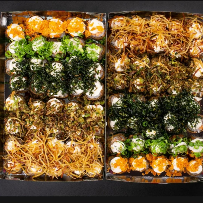 10 uramaki com Doritos, 10 uramaki com couve, 10 uramaki com batata, 10 uramaki com cream cheese