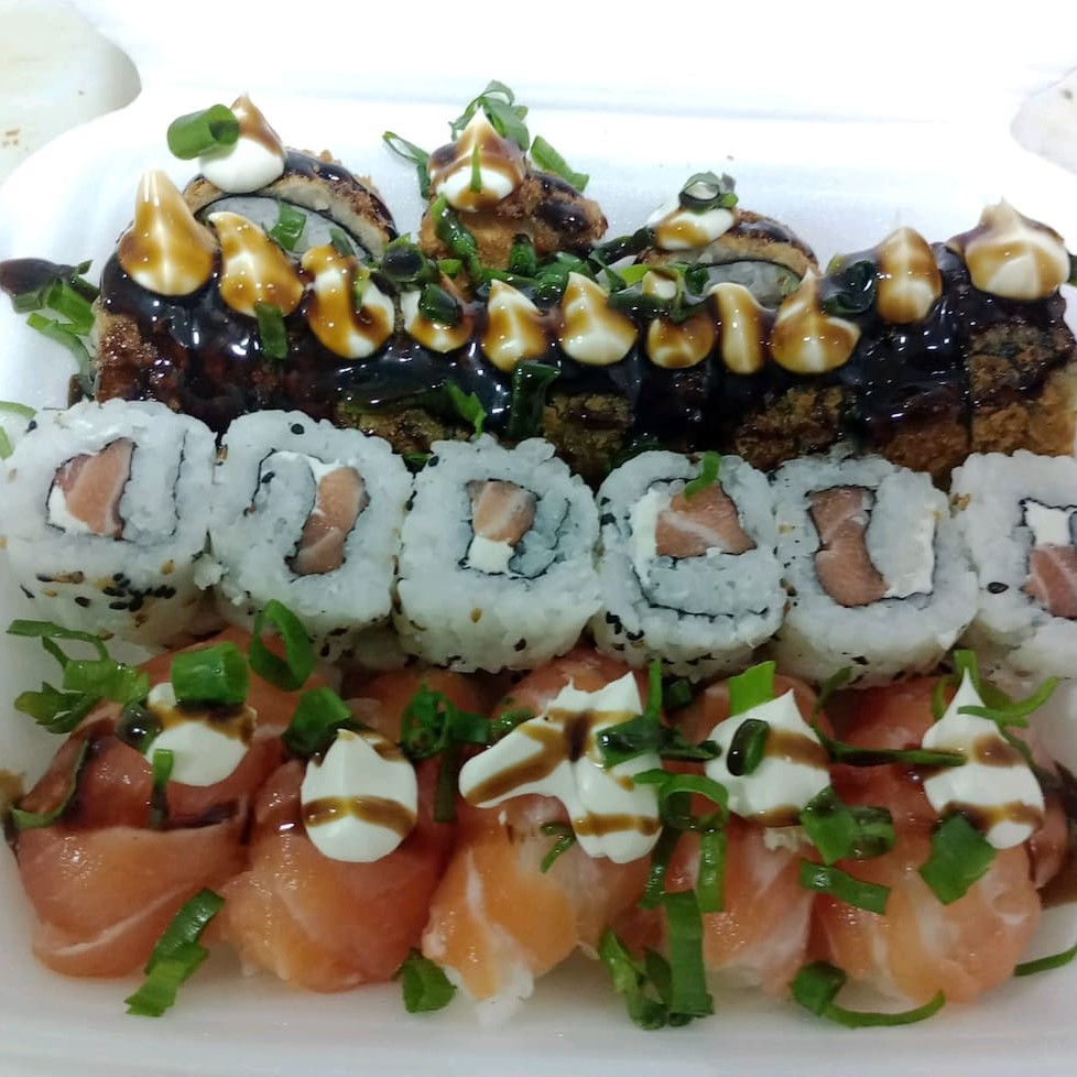 Acompanha 3 combo 30 hot holl 1 temaki frito ..10 Joe 20 hossomaki e 20 Hot roll ...10 sachimi 10 uramaki 10 rossomaki 4 Joe 4 niguiri!