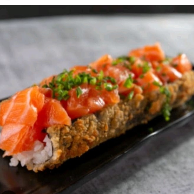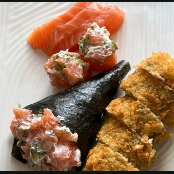 Acompanha 30 und de hot hool de salmão grelhado.. E um temaki frito !