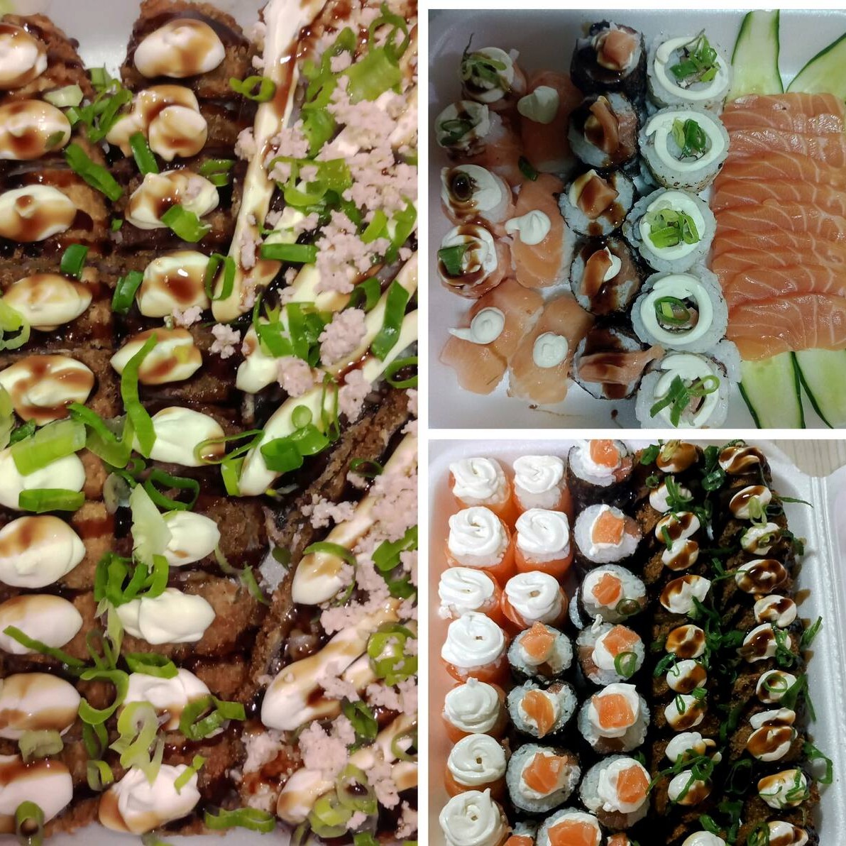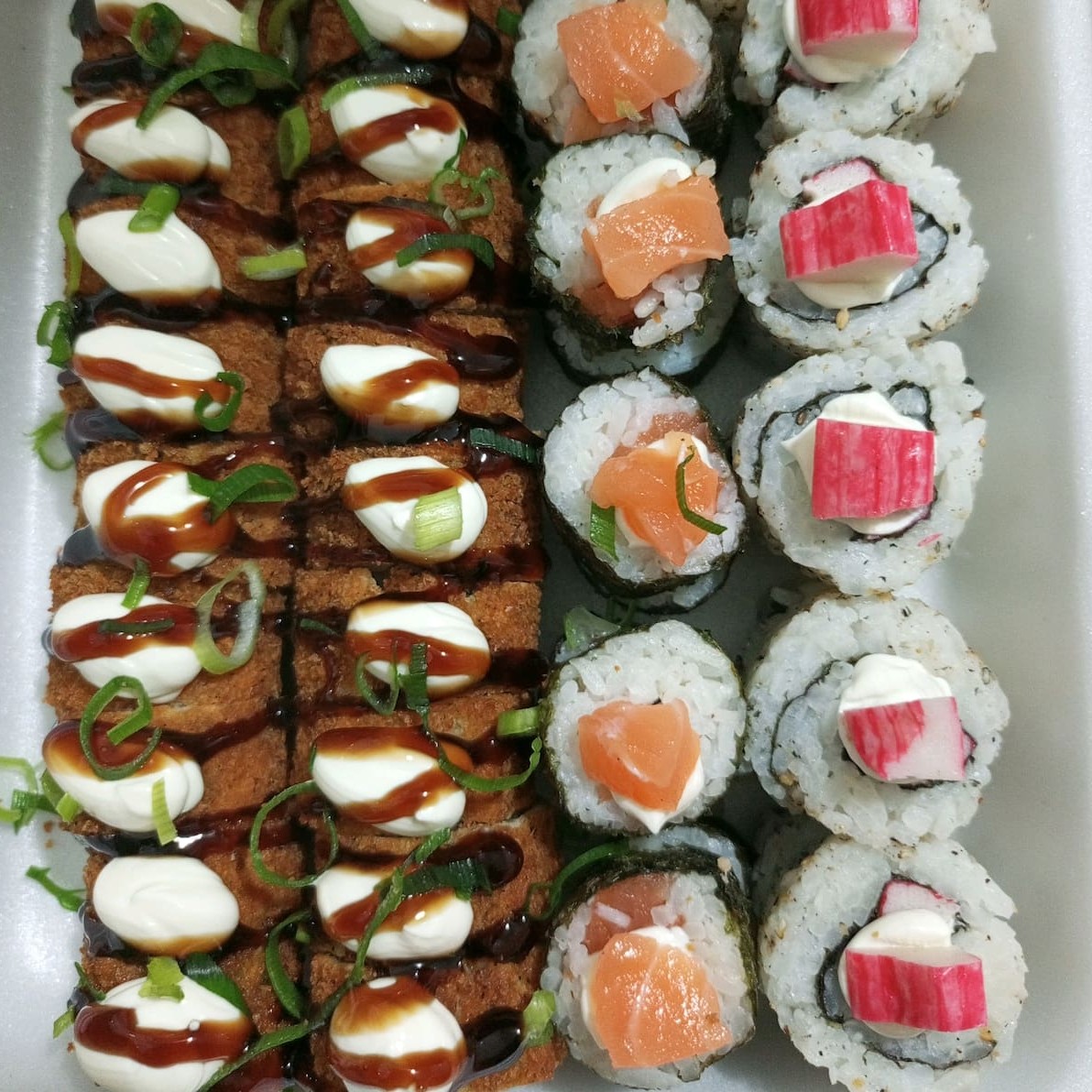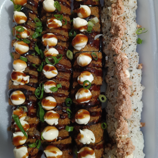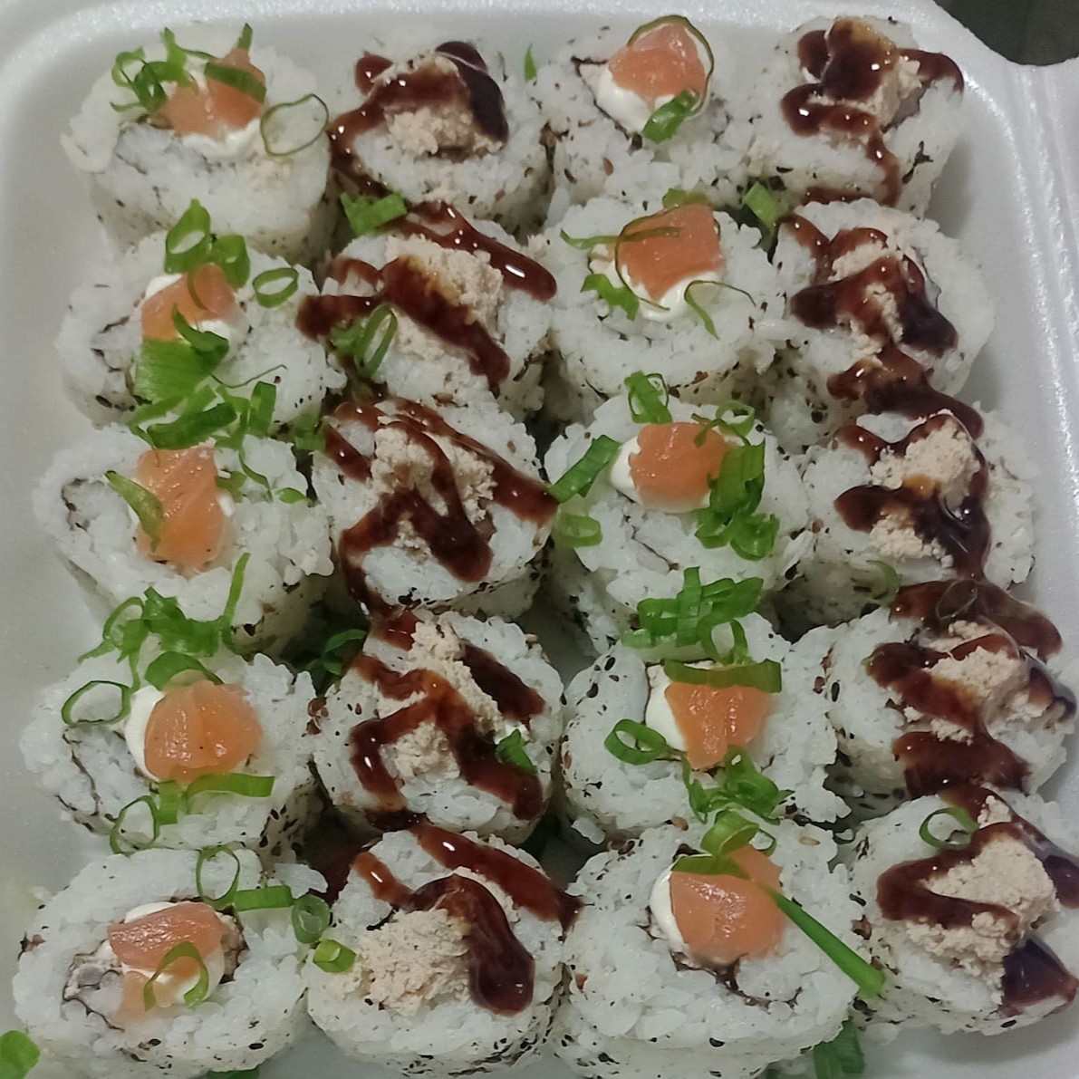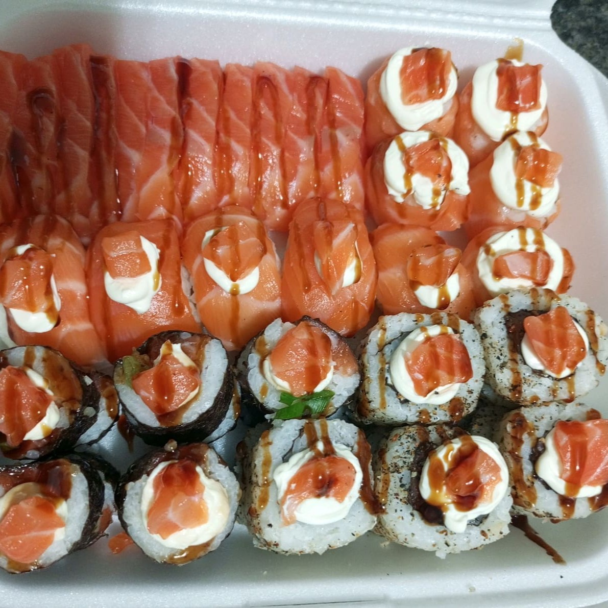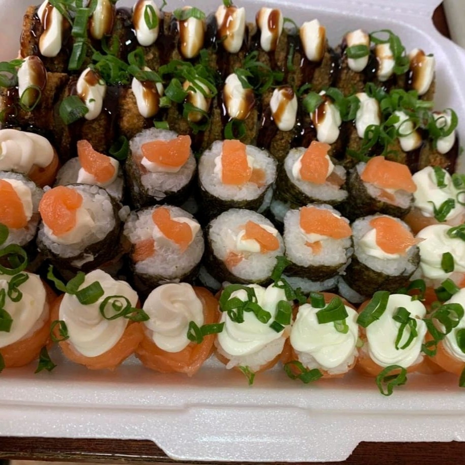 "Combinado 40 peças grelhado ...40 uraaki sendo 20 cru e 20 grelhado!!"" acompanha 3 molho 1 rachi .."