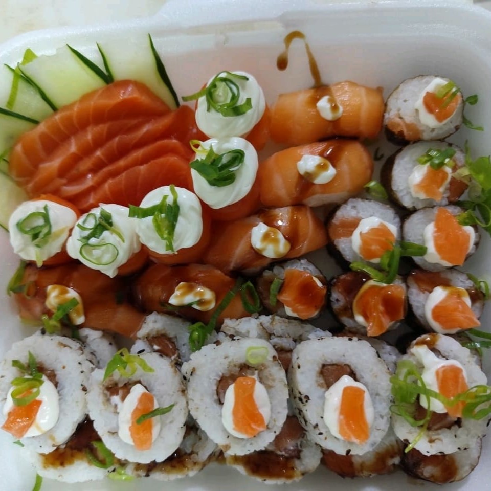 Acompanha 10 sachimis 10 hossomaki 10 uramaki 5 Joe 5 niguiri acompanha 5 molho 2 hashi