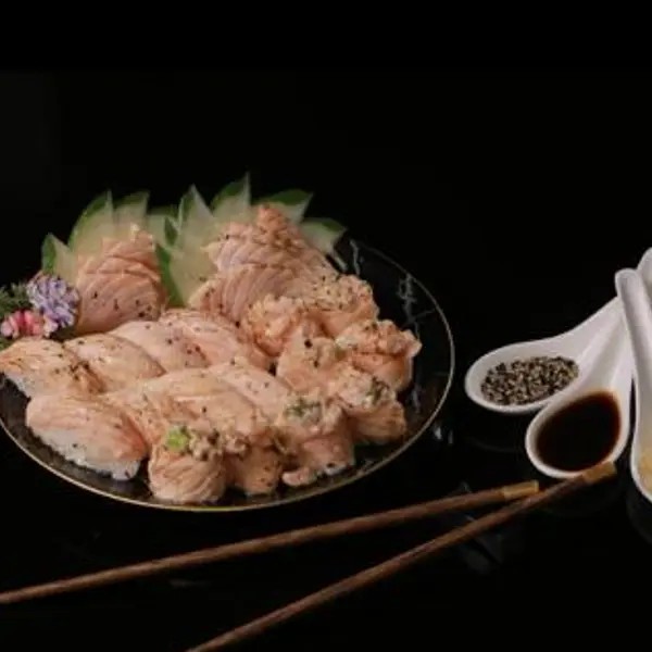 7 Sashimi maçaricado 8 Niguiri maçaricado 8 Jhou maçaricado