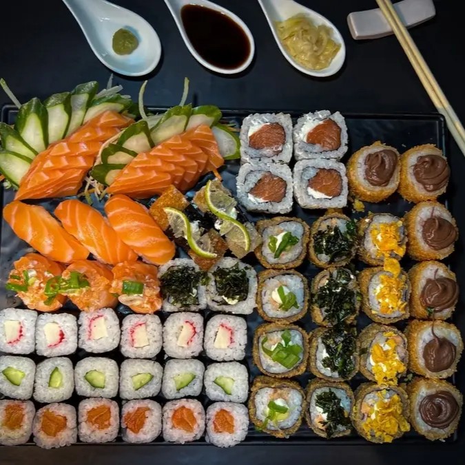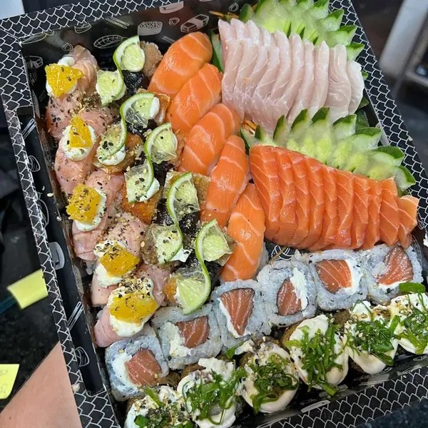 10 Sashimi de salmão 10 Sashimi de salmão maçaricado 10 Sashimi de tilápia 5 Niguiri Salmão 5 Niguiri Salmão maçaricado 5 Jhou Salmão 5 Jhou Doritos 5 Niguiri Skin