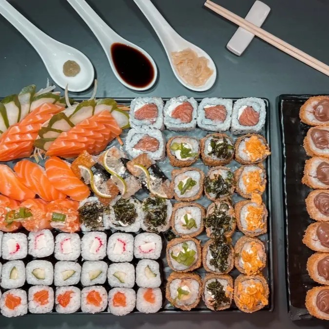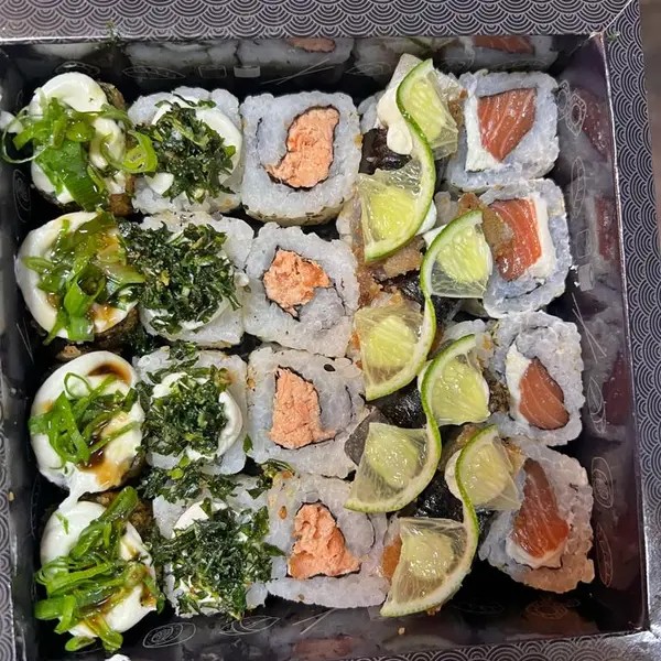 10 Sashimi maçaricado 6 Jhou couve maçaricado 6 Jhou Doritos maçaricado 6 Niguiri maçaricado 6 Uramaki Filadelfia 6 Jhou maçaricado 6 Niguiri Skin